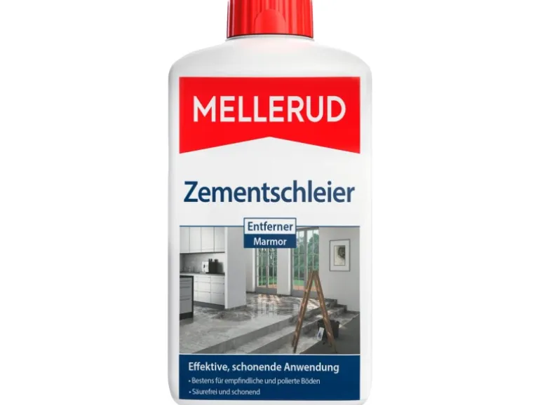 Der Mellerud Zementschleierentferner entfernt schnell und schonend Zementschleier, Zementreste, Kalkbeläge und Schmutz von Marmor sowie kalkhaltigen Natur- und Kunststeinen. Er kann pur oder verdünnt verwendet werden.