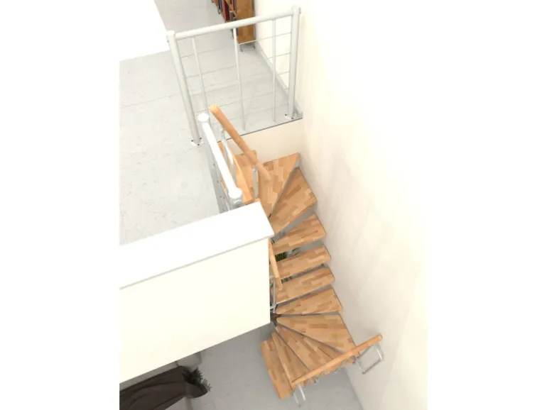 Raumspartreppe mit Massivholzstufen und Geländer mit vertikalen Stäben