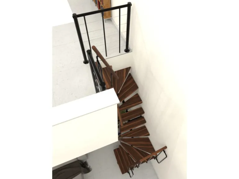 Raumspartreppe mit Massivholzstufen und Geländer mit vertikalen Stäben