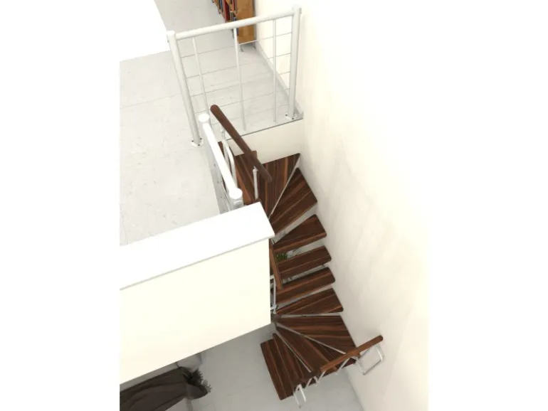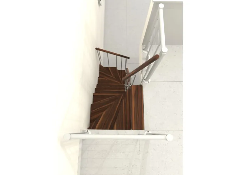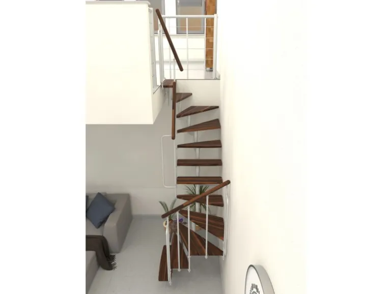 Raumspartreppe mit Massivholzstufen und Geländer mit vertikalen Stäben