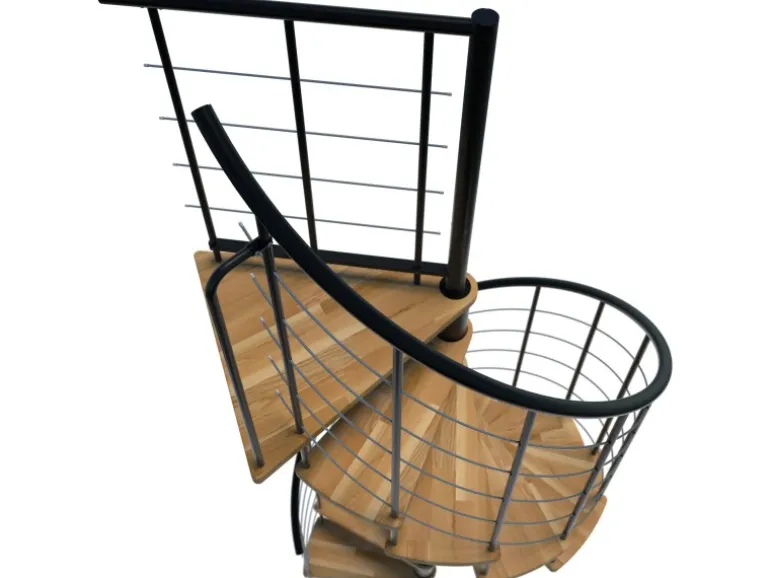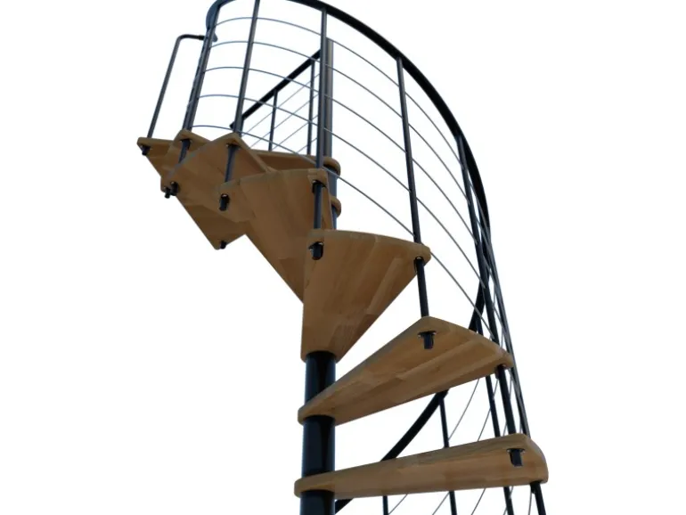 Kombination aus flachen Holzstufen und geschwungenen Untergurten sorgt für dynamische Optik