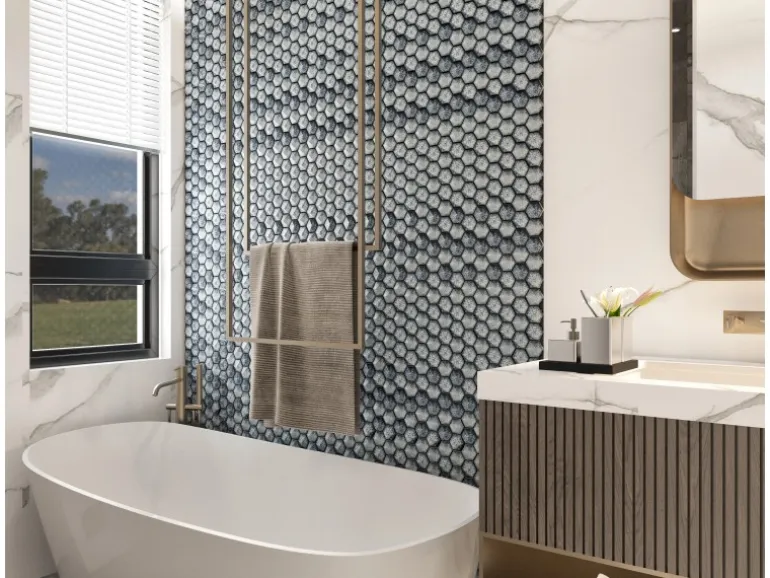 Glas-Mosaikfliese in Hexagonal-Optik für die Wandgestaltung im gesamten Wohnbereich