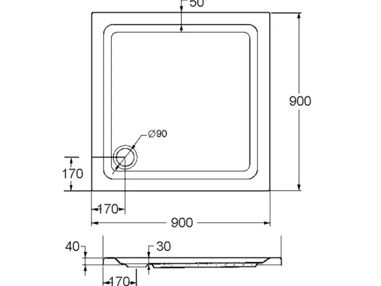 Quadratische Duschtasse 9 cm x 9 cm (LxB), bestens geeignet für kleine Badezimmer mit wenig Platz