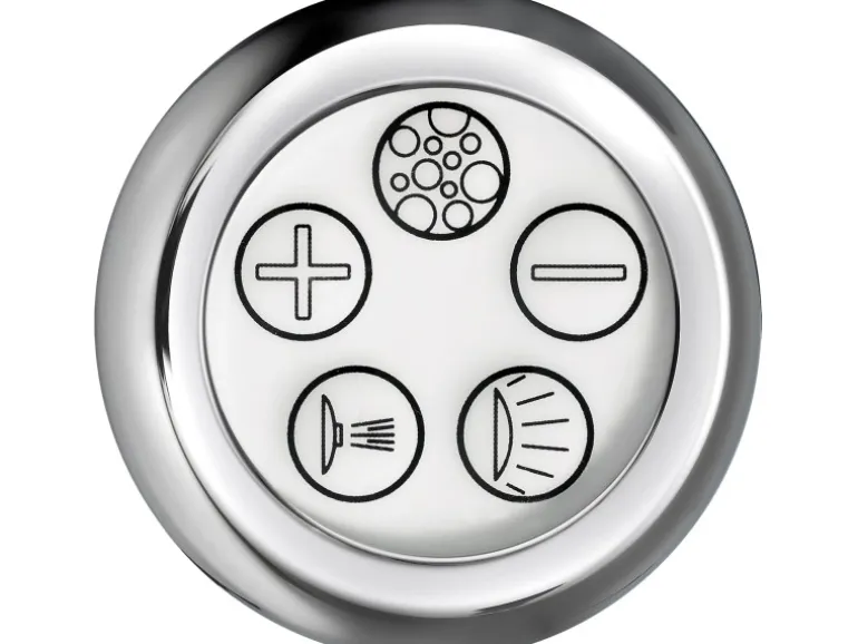 Zum weiteren Wohlbefinden ist ein Soundsystem mit 2 Körperschalllautsprechern á 20 Watt und eine Bluetooth-Steuereinheit verbaut. Steuern können Sie den Whirlpool über die im Wannenrand integrierte elektronische Steuerung mit Bedientaster. Der Whirlpool ist komplett installiert und anschlussfertig – inklusive Ab- und Überlaufgarnitur in der Farbe Chrom.