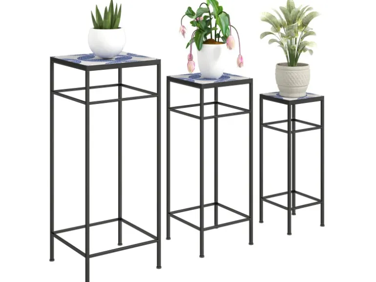 ● Die blau-weiße Mosaikfliesen-Oberfläche des Pflanzenständers sorgt für dekorativen Charme