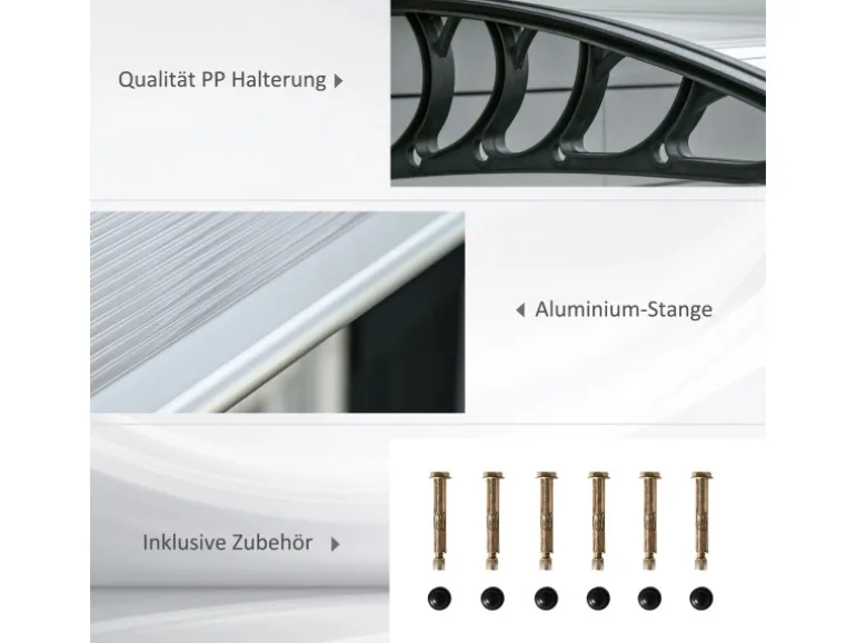 Empfangen Sie Ihre Gäste stilsicher mit einem schützenden Vordach! Unsere transparente Überdachung für Eingangsbereiche von Outsunny bietet nicht nur Schutz vor UV-Strahlen, Regen und Schnee, sondern verleiht Ihrem Zuhause auch eine charmante Note. Genießen Sie milde Temperaturen und reduzieren Sie Blendungen mit diesem kleinen Helfer. Bringen Sie mit unserer eleganten Türmarkise Schönheit und Funktionalität in Ihr Zuhause und machen Sie sich bereit für stilvolle Stunden im Freien.