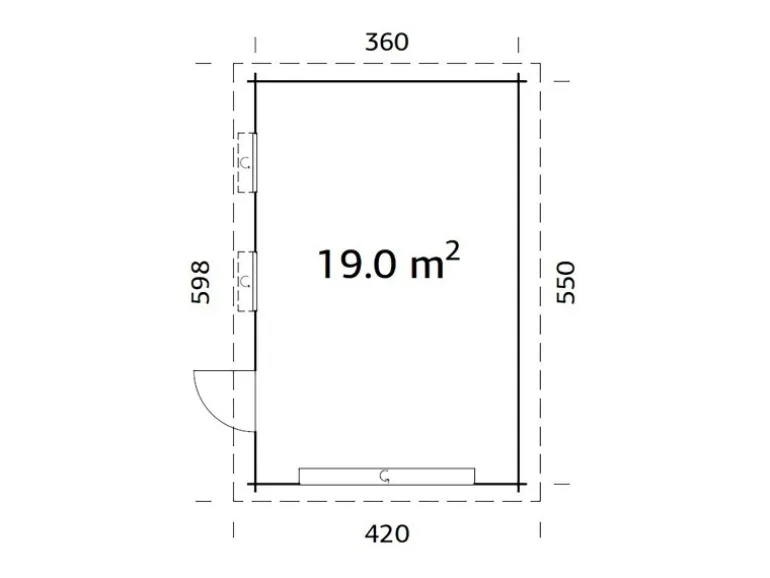 Die niedrige Türschwelle verfügt über eine Edelstahlabdeckung. Sowohl die Fenster, als auch die Tür sind mit 4 mm starkem Mattglas versehen. Die Torantrieb und Dacheindeckung sind separat erhältlich. Ab Werk wird das Haus mit einer farbigen Fassade im Grundfarbton hellgrau RAL7042 sowie der Akzentfarbe weiß RAL9016 versehen. Das Innere des Hauses bleibt naturbelassen.