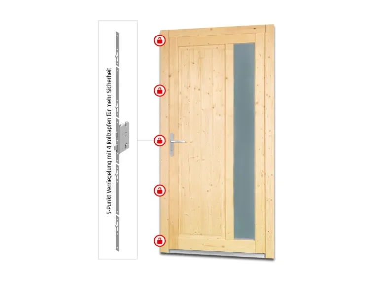 Dank seiner praktischen Eigenschaften eignet sich Massivholz ideal als Material zur Herstellung einer Nebeneingangstür. Neben seiner Stabilität bietet es Ihnen eine natürliche Wärmedämmung und schützt Sie vor Lärm, sodass es sich als Material grundlegend von Metall und Kunststoff abhebt.