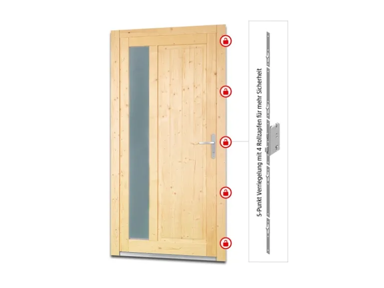 Dank seiner praktischen Eigenschaften eignet sich Massivholz ideal als Material zur Herstellung einer Nebeneingangstür. Neben seiner Stabilität bietet es Ihnen eine natürliche Wärmedämmung und schützt Sie vor Lärm, sodass es sich als Material grundlegend von Metall und Kunststoff abhebt.