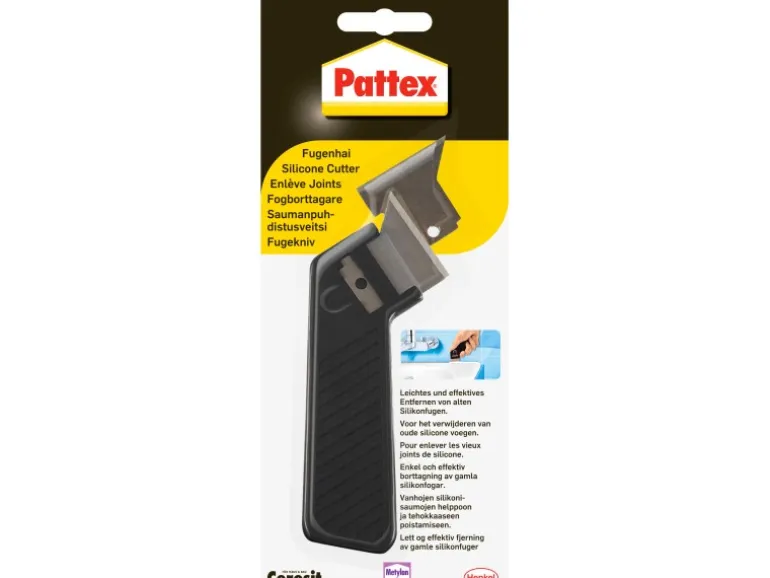 Anwendung: Mit Pattex Fugenhai die alte Fugenmasse vorsichtig herausschneiden. Die Reste einfach entfernen. Sobald die erste Klinge abgenutzt ist, die Ersatzklinge einsetzen.