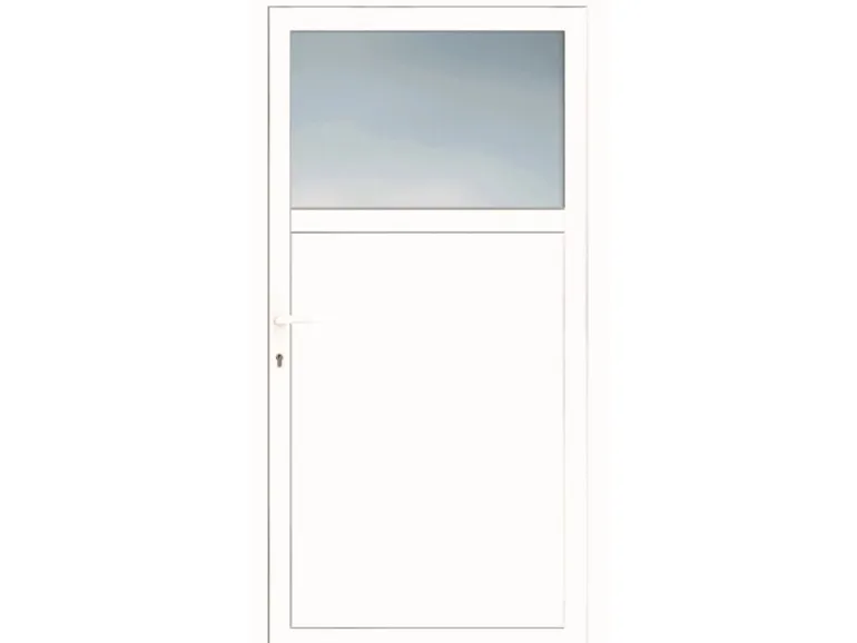 Ausgestattet ist die Tür mit einer dauerelastischen Dichtung sowie 3-dimensional verstellbaren Türbändern (3 Stück), Verbundsicherheitsglas (VSG) ISO-Sablat(Milchglas)-Wärmeschutzverglasung, einer 24 mm isolierten Füllung, einer Aluminium-Bodenschwelle, einer 3-Punkt Hakenverriegelung, 2 Stück Aufhebelsicherung auf der Bandseite und einem zusätzlichen Wetterschenkel.