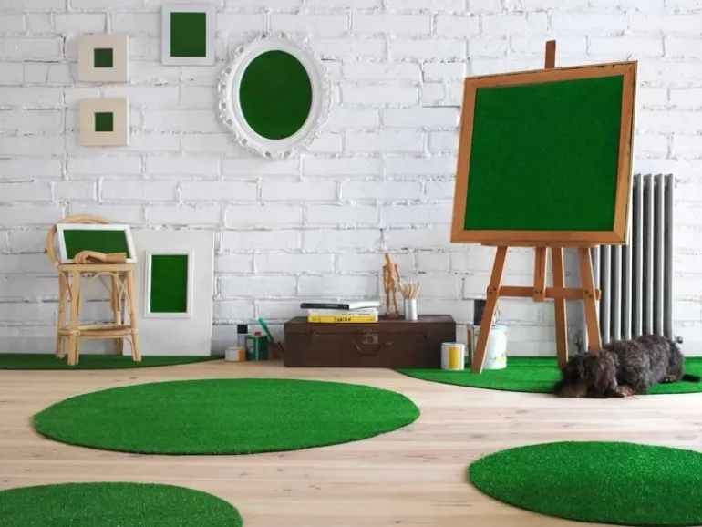 Dieser künstliche Rasen ist mit seiner kurzen 7mm Gesamthöhe und einer schimmernden Oberfläche perfekt für Messe, Event und öffentliche Innenräume geeignet.