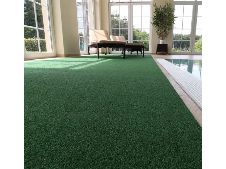 Dieser künstliche Rasen ist mit seiner kurzen 7mm Gesamthöhe und einer schimmernden Oberfläche perfekt für Messe, Event und öffentliche Innenräume geeignet.