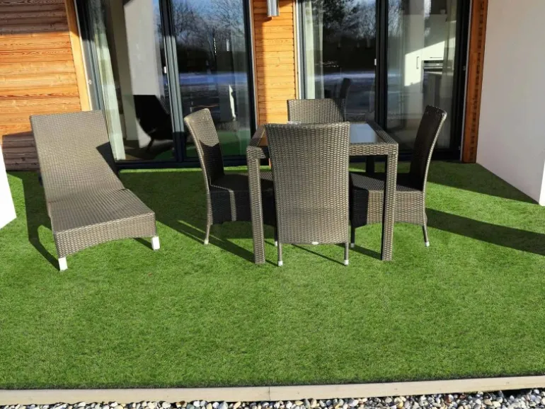 Kunstrasen WOODLANDEntdecken Sie den Kunstrasen WOODLAND – die ideale Lösung für einen dauerhaft perfekten Garten, Balkon oder Terrasse.Dieser hochwertige Kunstrasen verbindet Ästhetik mit Funktionalität und bietet dank seiner UV-Stabilisierung und Wasserdurchlässigkeit eine langlebige Grünfläche für jede Jahreszeit.Mit einer Gesamthöhe von 27mm imitiert WOODLAND die Höhe eines frisch gemähten Rasens und schafft mit seiner satten grünen Farbe und weichen Oberfläche eine einladende Atmosphäre.Aus einer Mischung von 70% Polyethylen und 30% Polypropylen gefertigt, gewährleistet er nicht nur eine realistische Optik, sondern auch eine hohe Wetterfestigkeit.Egal ob für das Verlegen auf dem Balkon, die Gestaltung der Terrasse oder als pflegeleichter Outdoor Bodenbelag im Garten – WOODLAND ist die perfekte Wahl.