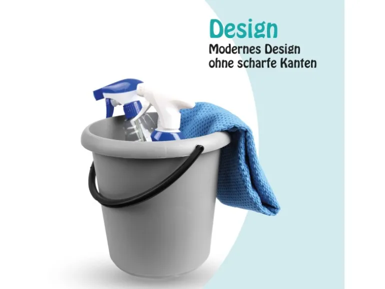 Unser Putzeimer besteht aus hochwertigem Kunststoff, der sowohl langlebig als auch leicht ist. Der Kunststoff ist resistent gegen eine Vielzahl von Chemikalien, was ihn ideal für den Einsatz mit Reinigungsmitteln, Farben und anderen potenziell aggressiven Substanzen macht. Darüber hinaus wird der Eimer in der Europäischen Union (EU) hergestellt, was hohe Qualitätsstandards und einen kurzen Transportweg garantiert.