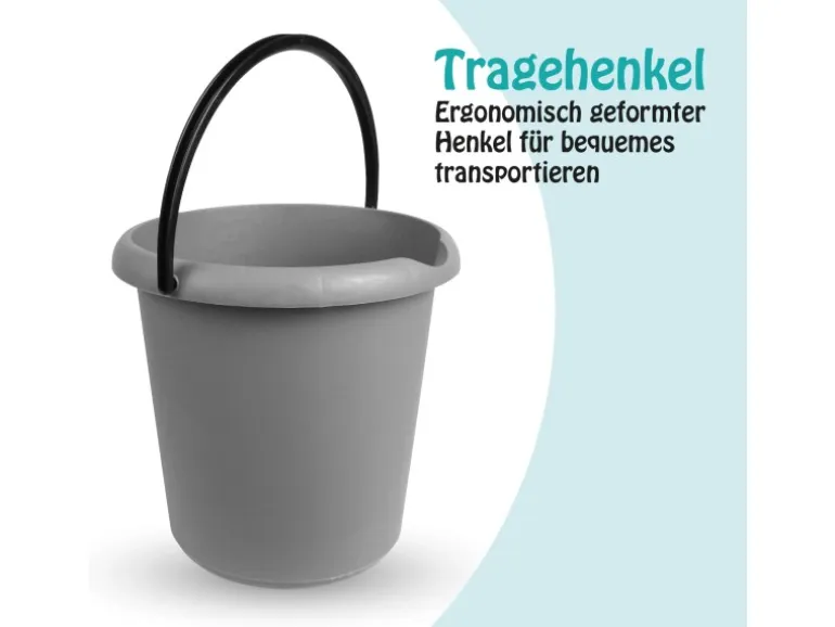Ein herausragendes Merkmal dieses Eimers ist der robuste Tragehenkel aus Kunststoff. Dieser Henkel ist ergonomisch gestaltet, um den Tragekomfort zu maximieren. Dank seiner soliden Bauweise können auch schwerere Lasten mühelos transportiert werden. Der Henkel ist fest mit dem Eimer verbunden und bietet durch seine robuste Konstruktion und seine angenehme Haptik einen sicheren Griff, selbst wenn der Eimer voll befüllt ist.