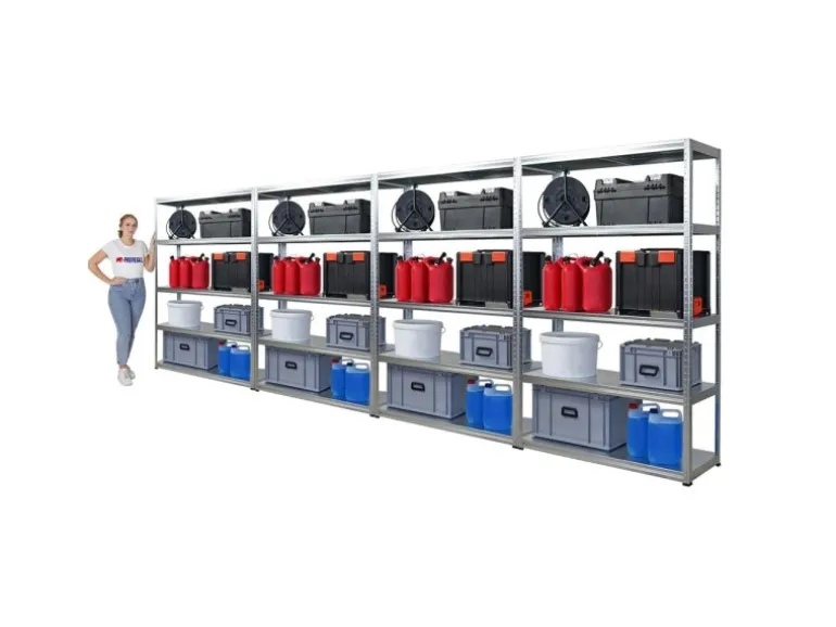 Der Lastregal SLIM EAGLE Mega Deal von PROREGAL ist ein Allzweckmetallregal Kombination. Mit einer Fachbodenlast von 130kg, einer Höhe von 180cm und einer Breite von jeweils 60-120cm ist der Mega Deal für einfache Anwendungsfälle in der Werkstatt, der Garage bis hin zum Büro oder im Haushalt bestens geeignet.