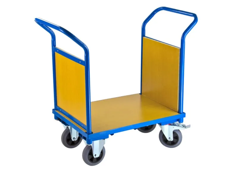Sicherer Transport durch zwei Stirnwände Der PROREGAL Transportwagen hat eine stabile Rohr- und Rahmenkonstruktion, dadurch ermöglicht er eine hohe Belastbarkeit bis 180 kg. Dennoch ist er durch seine großen Vollgummiräder leichtgängig und wendig. Der Transportwagen ist mit 2 Lenkrollen und 2 Bockrollen ausgestattet. Der Boden und und die Wände sind aus stabilen furnierten Holzplatten. Die Lieferung erfolgt nicht montiert.