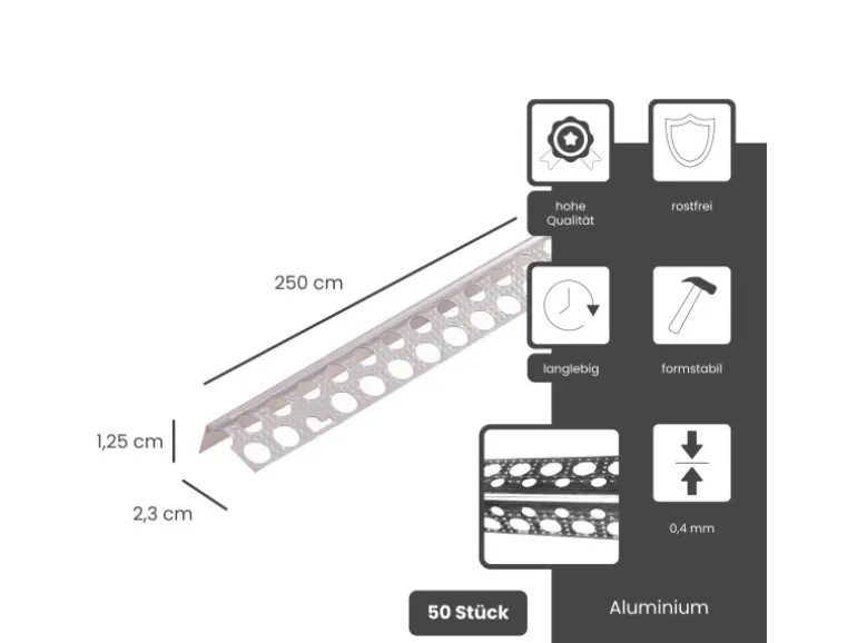 Putzschiene wurde aus Aluminium hergestellt und ist äußerst formstabil als auch widerstandsfähig