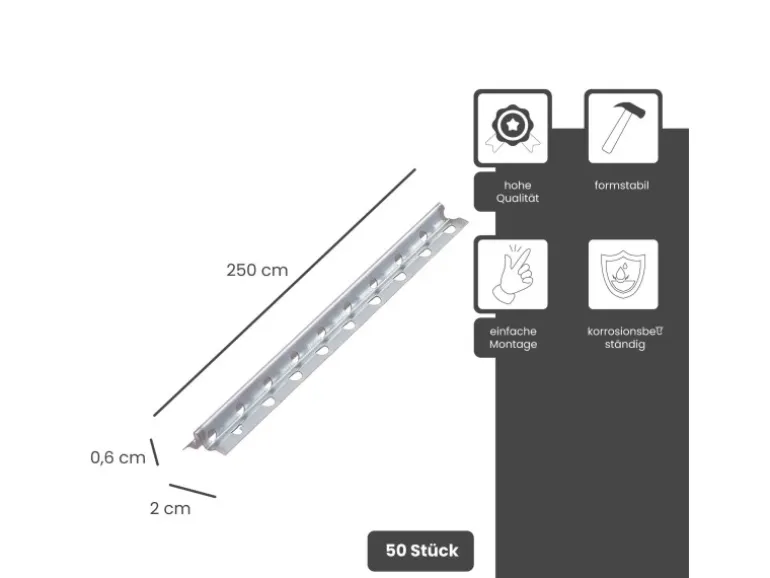 Eigenschaften der Schnellputzschiene aus verzinktem Stahl: