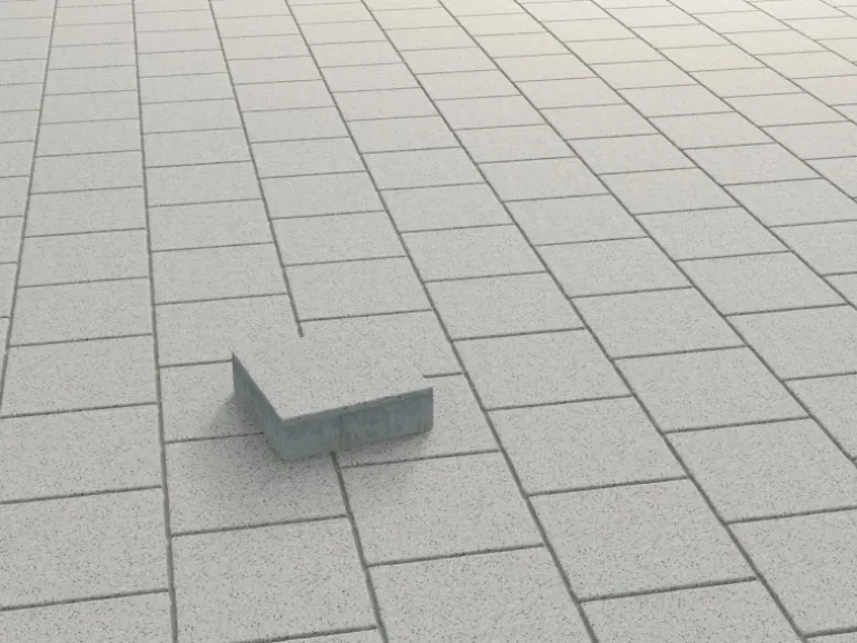 Um Wasseransammlungen zu verhindern sollte ein Fugenabstand von 3 mm – 5 mm eingehalten werden. An den vielen Beton-Pflastersteinen sind bereits Abstandshalter für einen gleichmäßigen Fugenabstand angebracht und erleichtern die Arbeit.
