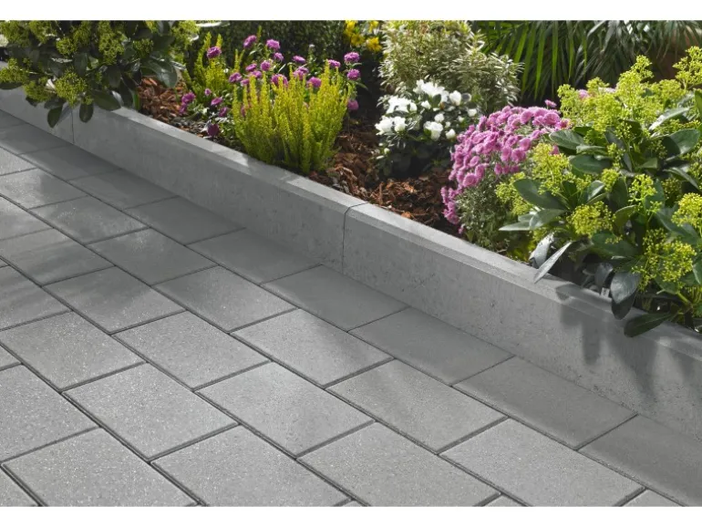 Die modernen Farben unterstreichen den edlen Charakter und verleihen Ihrem Flächenbelag einen exklusiven Rahmen. Zudem verbindet der Randstein eine sehr feine Oberfläche und leichtem Glimmereffekt mit einem großzügigen Steinformat.
