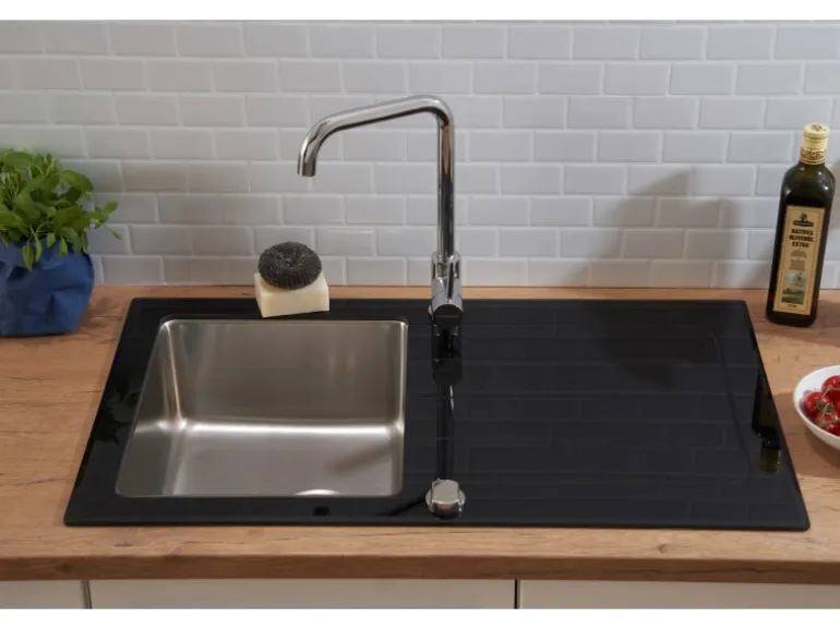 Glas Spüle mit 1 Becken und Abtropffläche