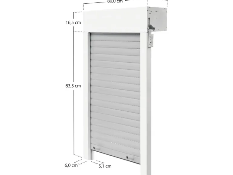 Dieses Aufsatzrolladen-Set mit den maximalen Maßen von 80 cm x 100 cm ist ideal für Kunststofffenster mit einer Höhe von max. 83,5 cm und einer Breite von max. 80 cm. Bei Bedarf kann der Aufsatzrolladen in Höhe und Breite individuell gekürzt werden.