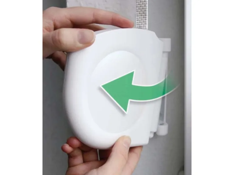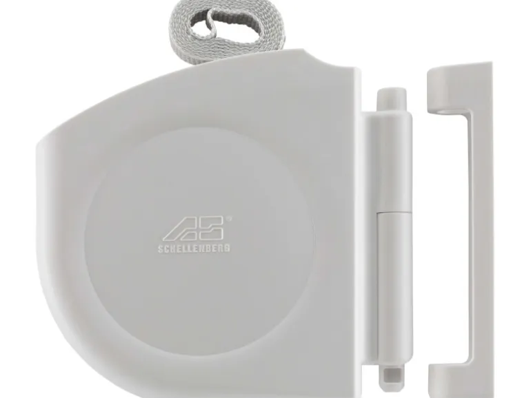 Der Design-Gurtwickler ist ein kompakter Aufschraubwickler im modernen Design. In seinem aufklappbaren Gehäuse ist ein Rollladengurt in Grau von 5 m Länge bereits vormontiert, was den Einbau deutlich vereinfacht. Der Design-Gurtwickler hat einen Lochabstand von 80 mm und wird an der Wand oder in der Fensterlaibung mit Schrauben befestigt. Er ist kompatibel mit dem Rollladensystem Mini, was einer Gurtbreite von 14 mm entspricht. Dank der Wandhalterung, in die der Gurtwickler eingehängt wird, ist das Gehäuse um 180° schwenkbar und bei Bedarf herausnehmbar.
