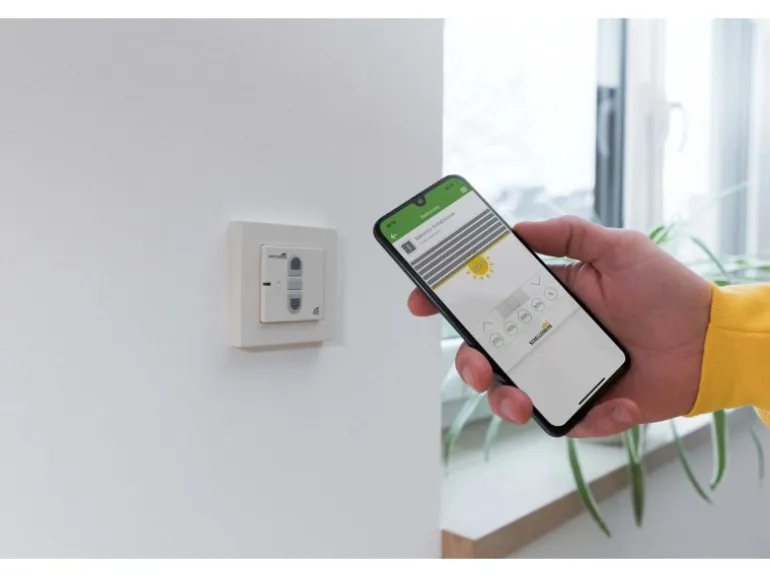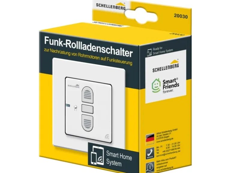 Optional kann der Funk-Rollladenschalter in ein Smart Home System von Smart Friends oder Schellenberg eingebunden und in Kombination mit unzähligen anderen smarten Geräten automatisiert werden. Dadurch ergibt sich z. B. die Option den Schalter über ein Smartphone oder Tablet zu bedienen.