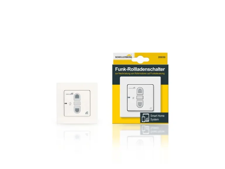 Der Funk-Rollladenschalter ermöglicht die komfortable Funk-Steuerung von mechanischen Rollladen- oder Raffstoremotoren. Er ersetzt einen vorhandenen Rollladen- oder Raffstoreschalter und erweitert Ihre Steuerungsmöglichkeiten. Durch große Tasten ist eine einfach zu handhabende Bedienung direkt am Gerät möglich. Außerdem besteht die Möglichkeit, ein Funk-Bedienelement von Schellenberg für die Steuerung aus der Ferne zu nutzen. Hierfür eignen sich die separat erhältlichen Schellenberg Funk-Handsender oder Funk-Zeitschaltuhren. Ein weiterer Vorteil ist, dass nicht nur Rollläden bewegt, sondern auch Raffstore-Lamellen positionsgenau eingestellt werden können.