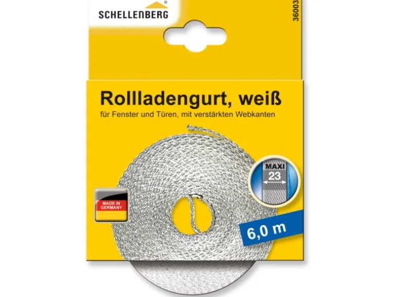 Der Rollladengurt eignet sich für die Bedienung eines Rollladens mit manuellem oder elektrischen Aufputz- oder Unterputz-Gurtwickler. Das Gurtband ist mit einer Breite von 23 mm für das Rollladensystem Maxi ausgelegt. Es besteht aus einem strapazierfähigen und abriebfesten Gewebe mit verstärkten Webkanten. Mit einer Länge von 6 m ist das Gurtband ideal für eine Renovierung oder als Ersatz-Gurtband.