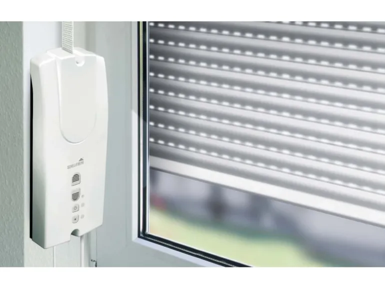 Der Schellenberg RolloDrive 55 ermöglicht die Bedienung eines Rollladens bequem per Knopfdruck oder Zeitautomatik. Der elektrische Gurtwickler ist für Kunststoff-Rollläden bis zu einer Fläche von 5 m² geeignet und kompatibel mit den Rollladensystemen Mini und Maxi mit einer Gurtbreite von 14 bzw. 23 mm. Er wird Aufputz auf der Wand oder in der Fensterlaibung montiert und ist ideal für Mietobjekte geeignet, da für den Einbau das Öffnen des Rollladenkastens nicht notwendig ist.