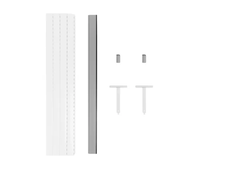 Dieses Set besteht aus einem grauen Rollladenpanzer aus PVC, Aufhängefedern, einer Endleiste aus Aluminium sowie passenden Rollladenstoppern.