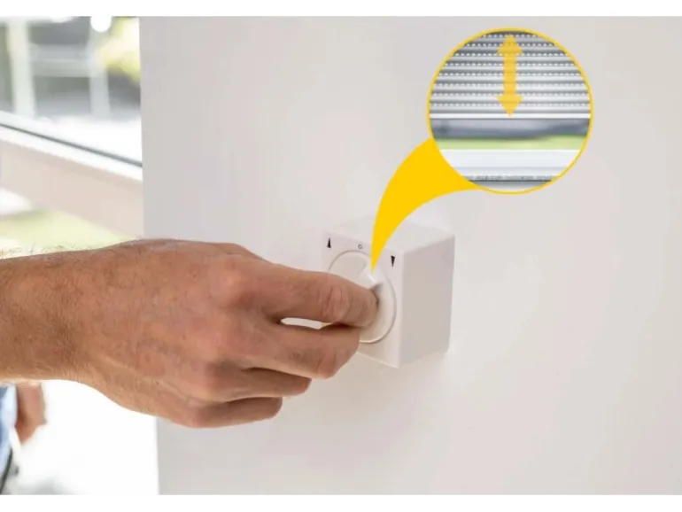 Der Rollladenschalter ermöglicht die manuelle Auf- und Ab-Steuerung eines Rollladens mit Motorisierung. Mithilfe eines Adapters im Inneren des Rollladenschalters, kann der Rollladenschalter von einer Tast- auf eine Rastfunktion umgestellt werden. Die Tastfunktion sieht vor, dass der Rollladenschalter zum Erreichen der gewünschten Endlage festgehalten werden muss. Bei der Rastfunktion hingegen rastet der Schalter ein und fährt bis zur gewünschten Endlage.