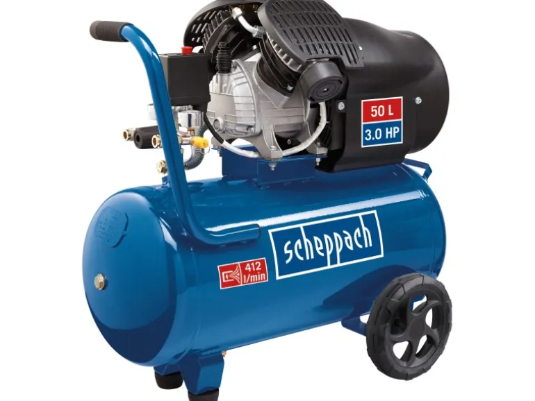 Dieser ölgeschmierte Kompressor mit zwei Zylindern ist kompatibel mit fast allen Druckluft-Werkzeugen. Dank des gummierten Handgriffes und der Fahrvorrichtung ist diese robuste Maschine außerdem leicht transportabel.