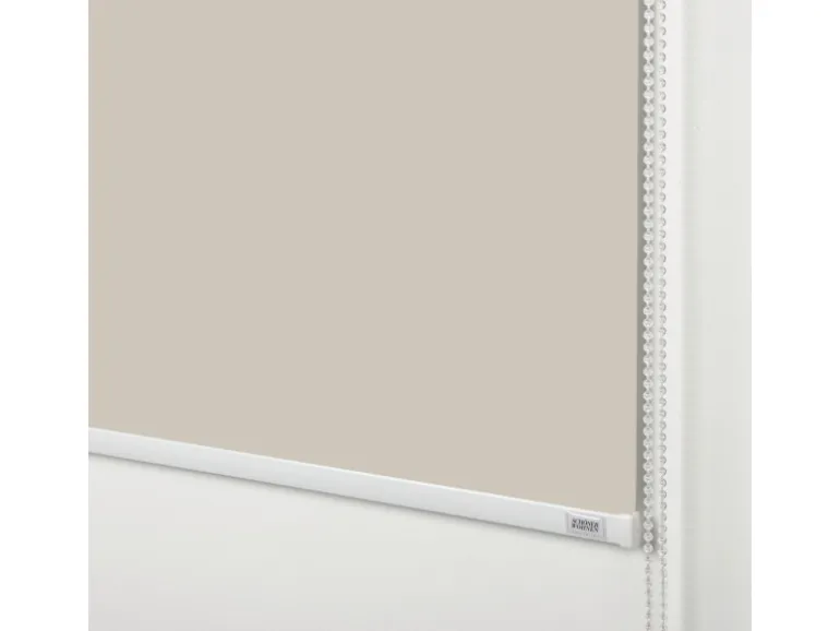 Die Bedienung erfolgt mühelos mithilfe einer transparenten Kette, die wahlweise rechts oder links zusammen mit dem Seitenzuggetriebe montiert werden kann. Die Rollotechnik und die Abschlussleiste in Weiß sorgen für eine edle Optik. Die flexible Montagemöglichkeit ermöglicht es, das Rollo an der Wand, Decke oder in der Fensternische zu befestigen. Alternativ können Sie es mit verstellbaren Klemmträgern am Fensterflügel befestigen. Auch die praktische Klebe-Montage ist möglich.