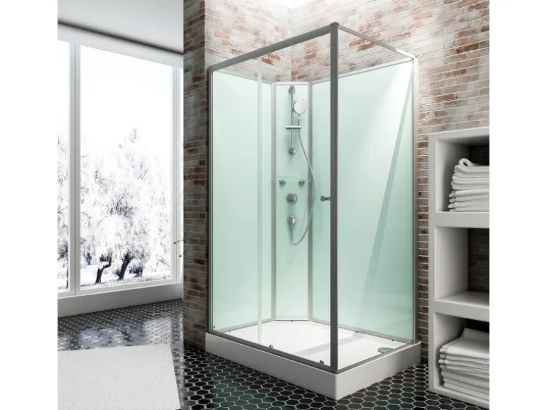 Die Vorderseite der Dusche verfügt über ein Festelement und eine Schiebetür, die einen großzügigen Einstieg mit einer Einstiegsbreite von 59 cm bieten. Dank der platzsparenden Schiebetür passt die Dusche auch in kleine oder schmale Badezimmer. Das Duschbecken besteht aus stabilem Sanitäracryl. Die Oberfläche ist pflegeleicht und lässt sich unkompliziert mit einem milden Reiniger säubern.
