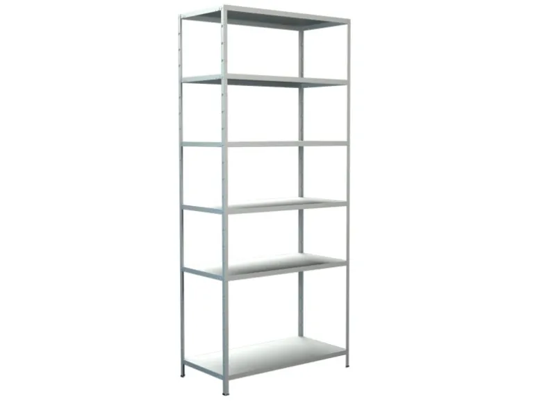 Vorhandene Verstellraster sorgen für ein beliebiges und einfaches Einstecken der Fachböden in die gewünschte Ebene. Modular erweiterbar mittels eines zusätzlichen Anbauregals.