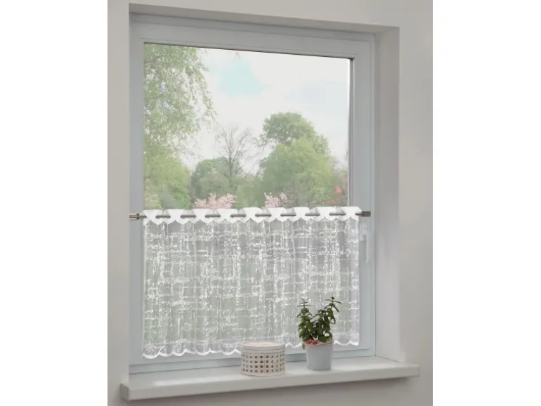 Die Sehlbach Bistrogardine mit Stangendurchzug zieht sofort die Aufmerksamkeit auf sich: Zum einen durch die kreativ gestaltete Lochleiste, zum anderen durch den faszinierenden Effekt in der Wirkware, der für ein leicht changierendes Erscheinungsbild am Fenster sorgt. Die Bistrogardine ist eine ideale Wahl, wenn viel Licht in den Raum gelangen soll. Diese ist hergestellt aus 100 % Polyester.