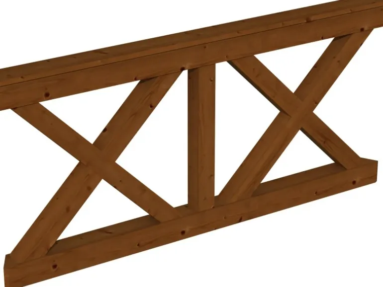 Die Konstruktion ist aus Konstruktionsvollholz (KVH) gefertigt. Als KVH bezeichnet man technisch getrocknetes, endlos verleimtes, massives Fichtenholz. Die einzelnen Holzteile haben wir getrocknet, nach Fehlern gescannt, sortiert und anschließend wetterfest durch Keilzinken miteinander endlos verleimt. Risse, Äste und leichte Verdrehungen spiegeln den Charakter der eingesetzten Materialien wider.
