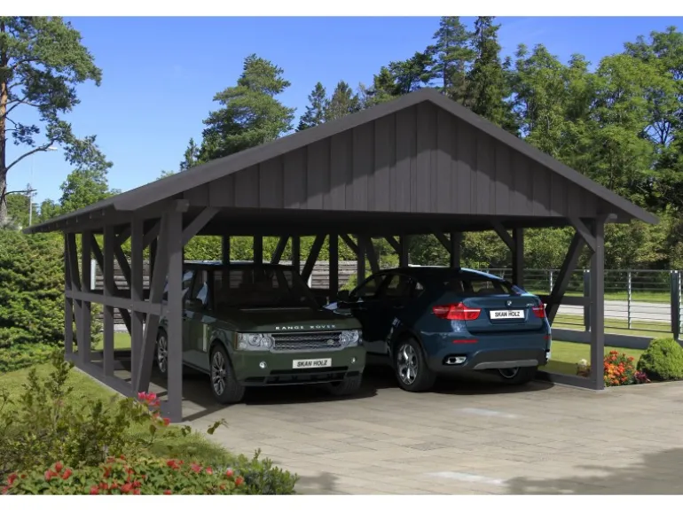 Skan Holz Carport Schwarzwald m. Dachschalung u. Abstellr. B 684 x 772 cm Grau