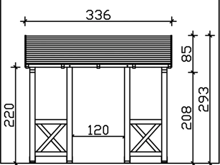 Die Konstruktion des Vordaches ist aus Konstruktionsvollholz (KVH) gefertigt. Als KVH bezeichnet man technisch getrocknetes, endlos verleimtes, massives Fichtenholz. Die einzelnen Holzteile werden getrocknet, nach Fehlern gescannt, sortiert und anschließend wetterfest durch Keilzinken miteinander endlos verleimt. Risse, Äste und leichte Verdrehungen spiegeln den Charakter der eingesetzten Materialien wider.