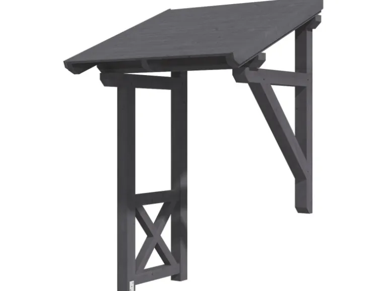 Die Konstruktion des Vordaches ist aus Konstruktionsvollholz (KVH) gefertigt. Als KVH bezeichnet man technisch getrocknetes, endlos verleimtes, massives Fichtenholz. Die einzelnen Holzteile werden getrocknet, nach Fehlern gescannt, sortiert und anschließend wetterfest durch Keilzinken miteinander endlos verleimt. Risse, Äste und leichte Verdrehungen spiegeln den Charakter der eingesetzten Materialien wider.