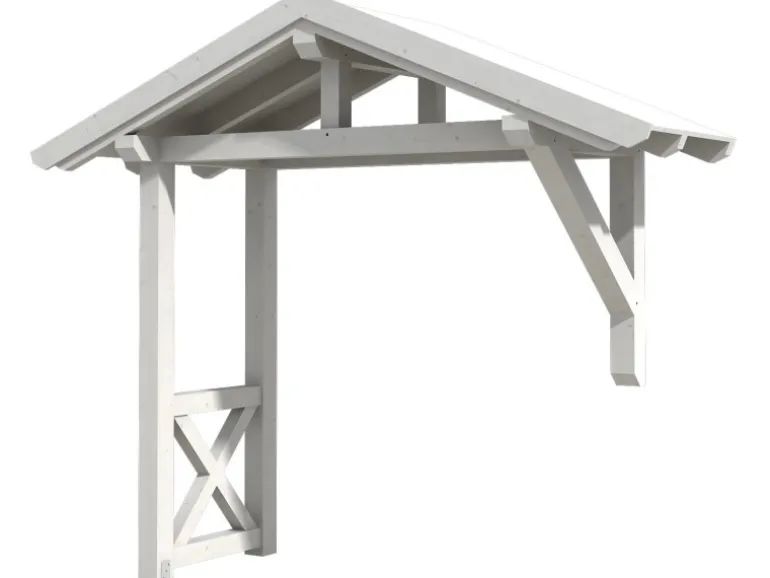Die Konstruktion des Vordaches ist aus Konstruktionsvollholz (KVH) gefertigt. Als KVH bezeichnet man technisch getrocknetes, endlos verleimtes, massives Fichtenholz. Die einzelnen Holzteile werden getrocknet, nach Fehlern gescannt, sortiert und anschließend wetterfest durch Keilzinken miteinander endlos verleimt. Risse, Äste und leichte Verdrehungen spiegeln den Charakter der eingesetzten Materialien wider.