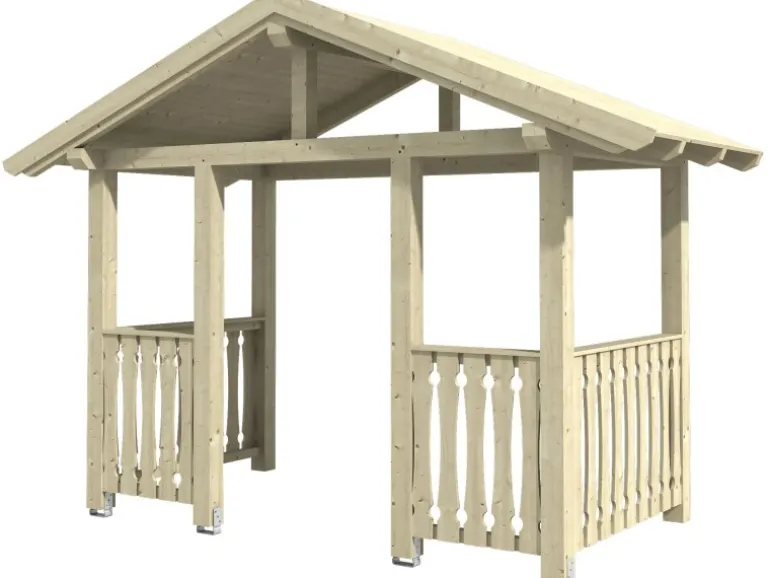 Dieser Bausatz ist farblich unbehandelt. Hölzer im Außenbereich sind der ständigen Witterung, sowie dem Risiko von Pilz- und Insektenbefall ausgesetzt. Daher ist ein regelmäßiger Schutzanstrich unbedingt erforderlich. Der allseitige Erstanstrich sollte vor der Montage erfolgen. Verwenden Sie zuerst Holzschutzgrund zum Schutz gegen Pilz und Insektenbefall. Anschließend, gegen Verfärbung und Schäden durch UV-Licht, je eine Zwischen- und Schlußbeschichtung mit hochwertiger Holzschutzlasur oder -farbe. Rechnen Sie mit Pflegeintervallen von ca. 4 bis 5 Jahren, spätestens aber vor dem Eintreten sichtbarer Schäden.