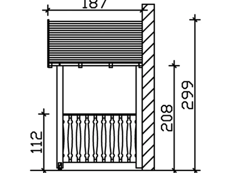 Die Konstruktion des Vordaches ist aus Konstruktionsvollholz (KVH) gefertigt. Als KVH bezeichnet man technisch getrocknetes, endlos verleimtes, massives Fichtenholz. Die einzelnen Holzteile werden getrocknet, nach Fehlern gescannt, sortiert und anschließend wetterfest durch Keilzinken miteinander endlos verleimt. Risse, Äste und leichte Verdrehungen spiegeln den Charakter der eingesetzten Materialien wider.
