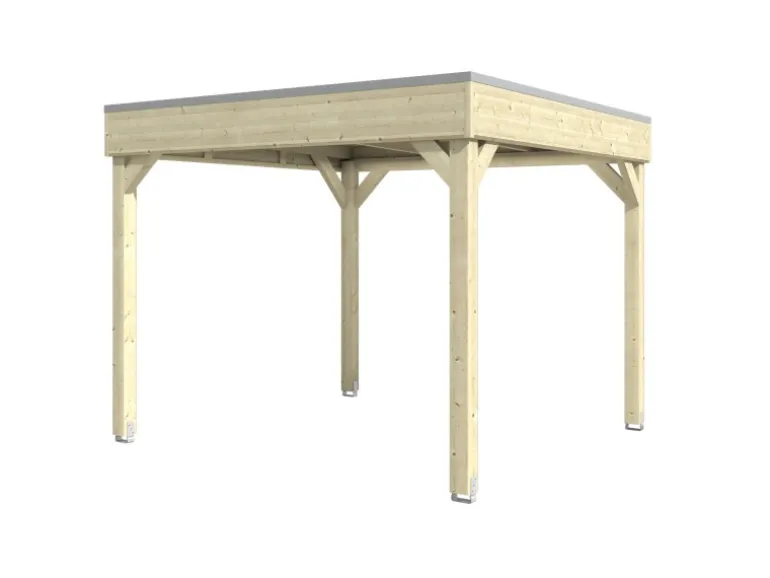 Die robusten 20 mm Dachbretter besitzen für eine einfache Anbringung eine Nut-Feder-Verbindung. Eine Eindeckung des Daches mit Schweißbahnen oder KSK-M-Dachbahnen (separat erhältlich) erforderlich. Die Schneelast beträgt 110 kg/m². Sie können direkt nach der Anlieferung mit dem Aufbau beginnen, da dank der Lasur ein lästiges Grundieren und Streichen entfällt. Zur Befestigung auf dem Fundament sind außerdem Aufschraubstützen aus verzinktem Stahl inklusive passender Dübel enthalten. Das Montagematerial und die Aufbauanleitung sind ebenfalls im Lieferumfang enthalten, so dass sich der Aufbau äußerst unkompliziert gestaltet.