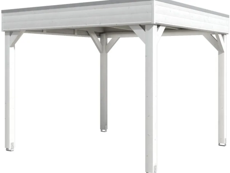 Das Konstruktionsvollholz besteht aus technisch getrocknetem, sortiertem und massivem Fichtenholz. Anschließend wurden die Holzteile wetterfest durch Keilzinken miteinander endlos verleimt. Kleine Riss, Äste oder Verdrehungen spiegeln den besonderen Charakter der Verarbeitung wieder. Die Konstruktion ist mit einer Lasur ideal geschützt. Die Lasur schützt das Holz vor Bläubefall, UV-Licht und vermindert Quell- und Schwundverhalten. Trotz der Lasur schimmert die natürliche Holzstruktur durch. Jedem Bausatz liegt eine Reparaturmenge an Lasur bei, sodass sie Beschädigungen ausgleichen können.