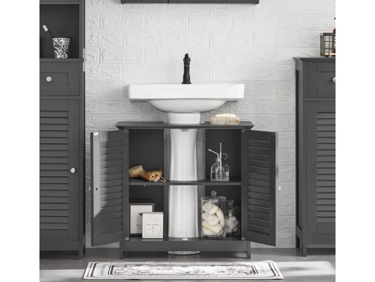 Die Lamellentüren fördern Luftzirkulation, verhindern Feuchtigkeit, Schimmel und Gerüche und verleihen dem Bad einen eleganten, ästhetischen Look.